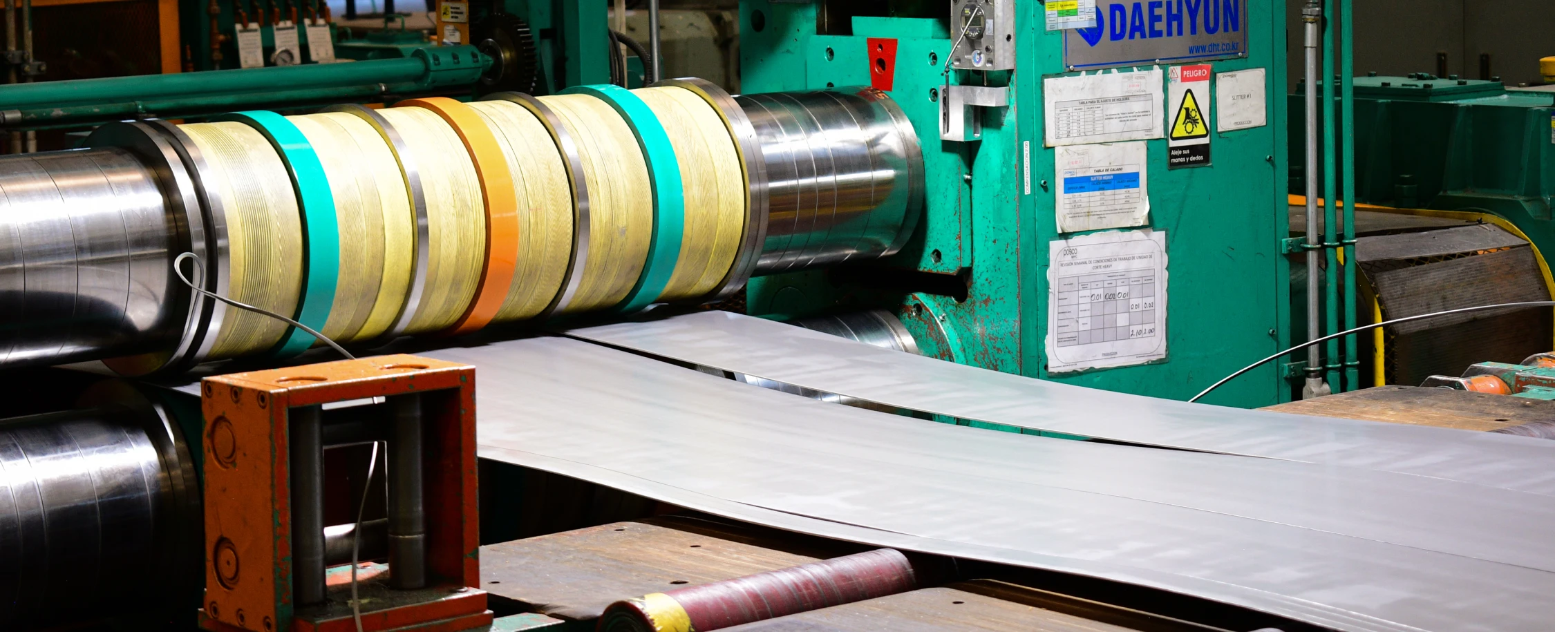 Línea de producción para corte longitudinal de materias primas al ancho requerido según pedido del cliente